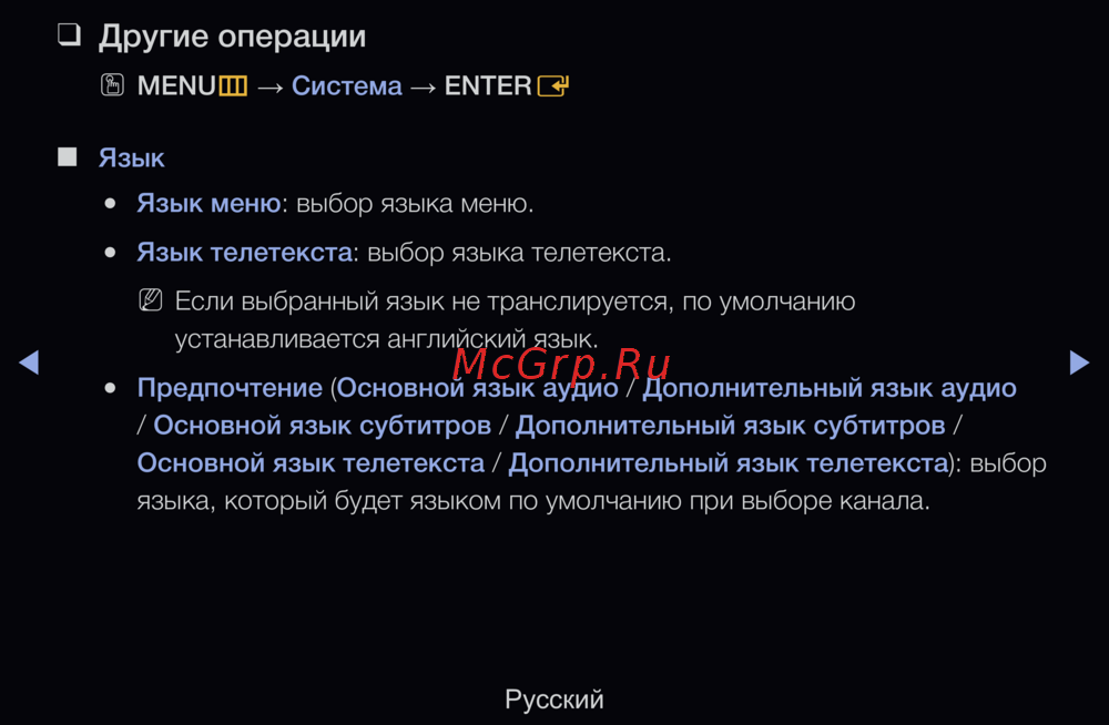 - Представленное меню может отличаться в зависимости от модели устройства p.313