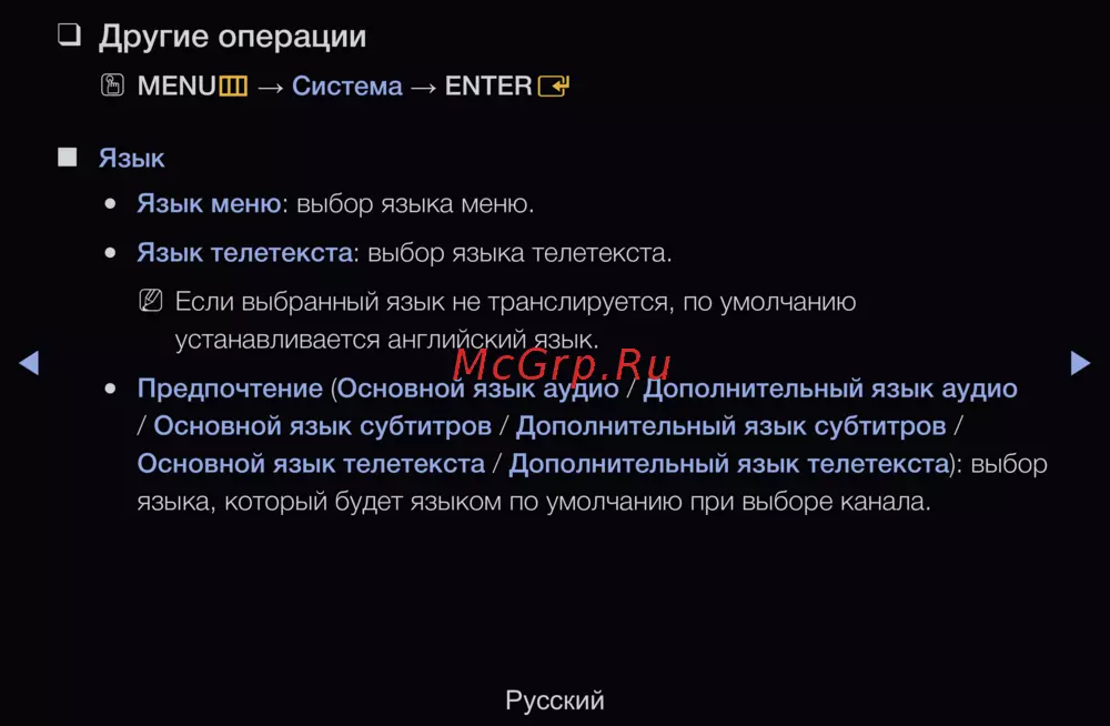 Предпочтение (Основной язык аудио / Дополнительный язык аудио