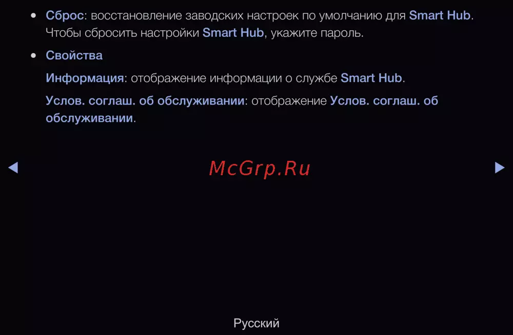 Сброс: восстановление заводских настроек по умолчанию для Smart Hub.