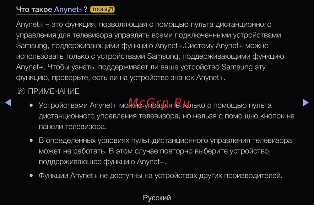 Anynet+. Чтобы узнать, поддерживает ли ваше устройство Samsung эту