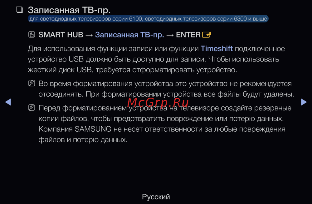 Samsung UE-32 D6100SW — инструкция по записи и форматированию USB для телевизоров [234/318]