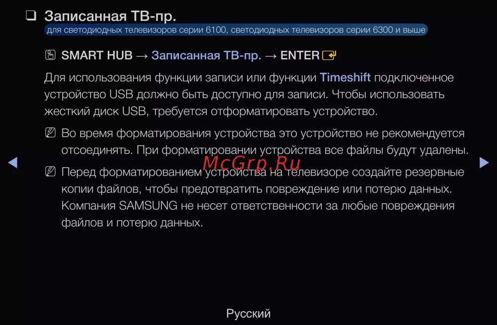 Узнайте, как использовать функцию записи и Timeshift на светодиодных телевизорах. Подробная инструкция по форматированию USB-устройств и созданию резервных копий.
