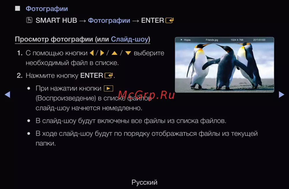 Просмотр фотографии (или Слайд-шоу)