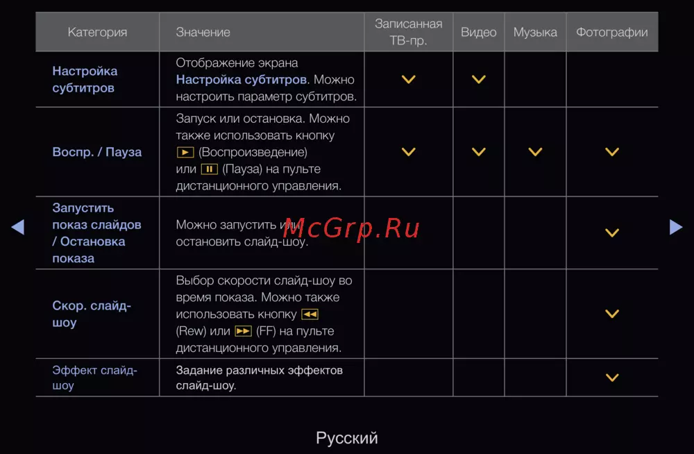Samsung UE-32 D6100SW — настройка субтитров и слайд-шоу на мультимедийных устройствах [264/318]