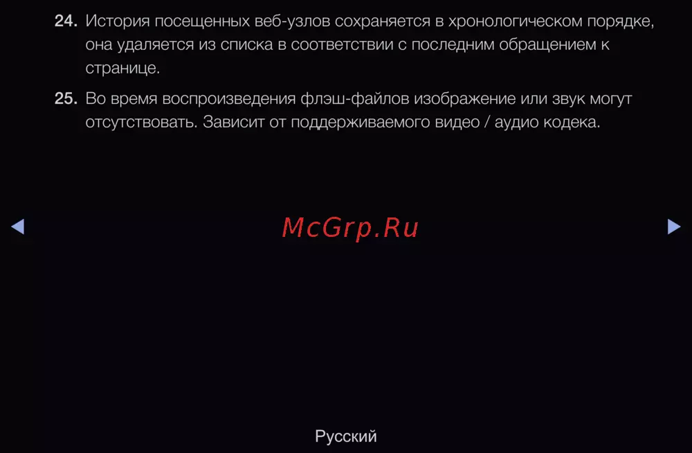 25. Во время воспроизведения флэш-файлов изображение или звук могут
