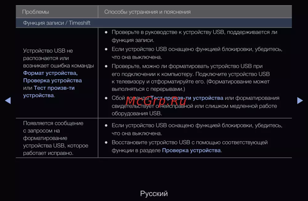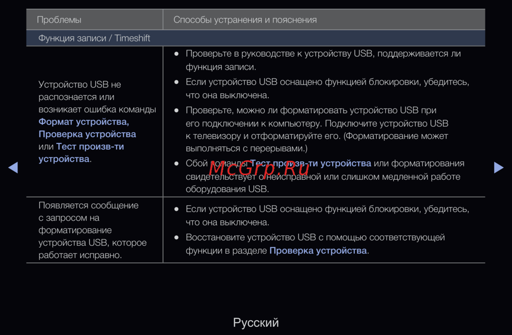 Samsung UE-32 D6100SW — устранение проблем с USB устройствами и форматирование [289/318]
