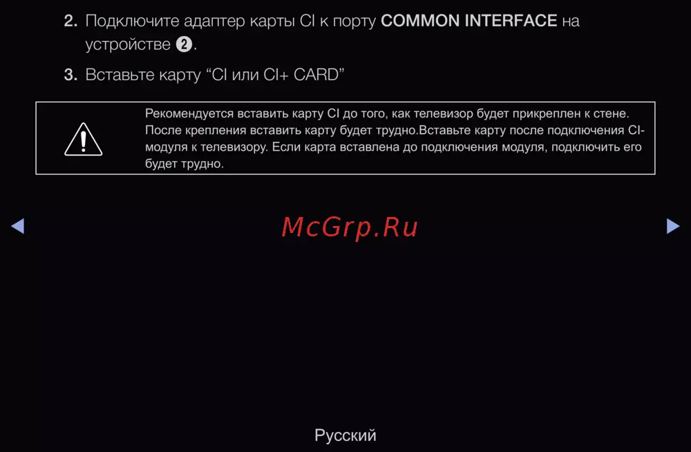 Рекомендуется вставить карту CI до того, как телевизор будет прикреплен к стене.