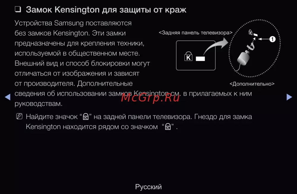 Samsung UE-32 D6100SW — замок Kensington для защиты техники в общественных местах [305/318]