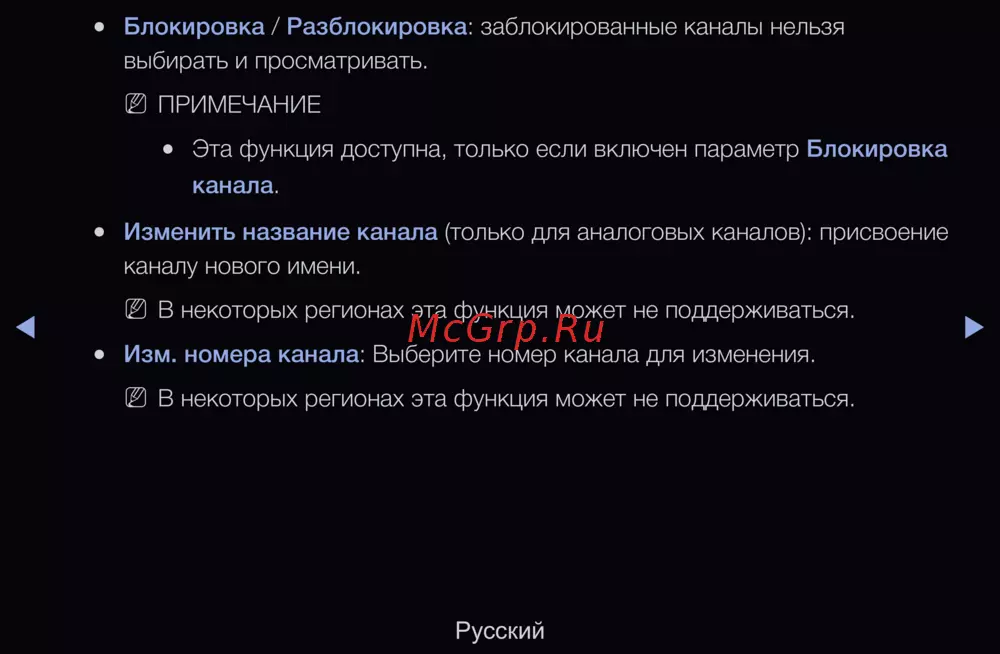 Блокировка / Разблокировка: заблокированные каналы нельзя