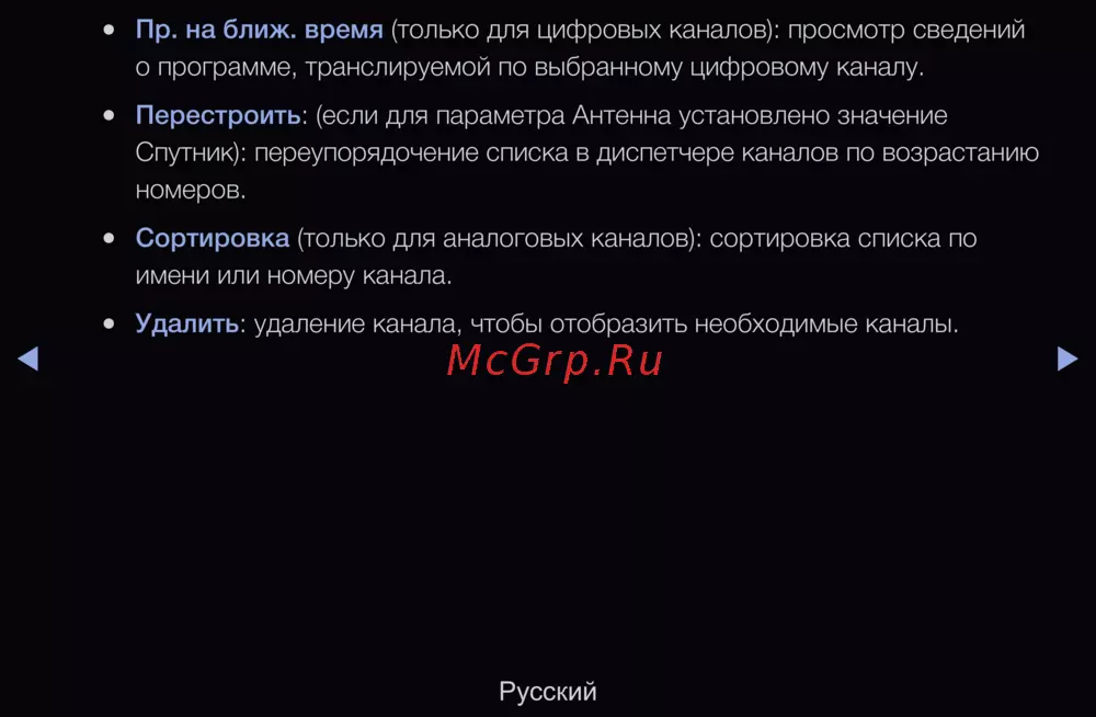 Сортировка (только для аналоговых каналов): сортировка списка по