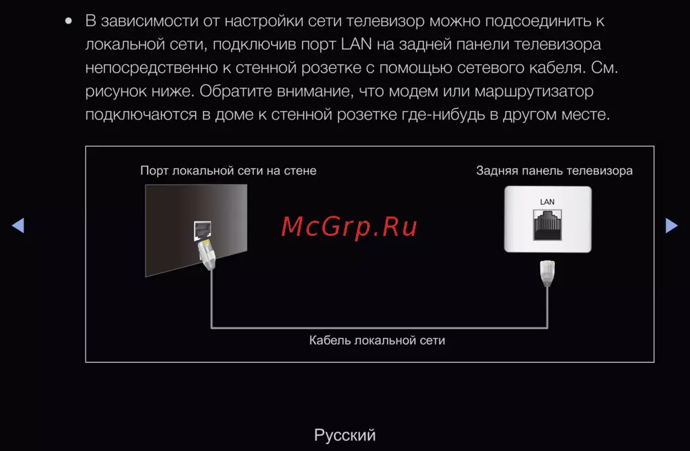 - Телевизор можно подключить к локальной сети подсоединив порт lan на задней панели телевизора к ip устройству совместного доступа которое подсоединено к внешнему модему для подключения используйте сетевой кабель см рисунок ниже p.89