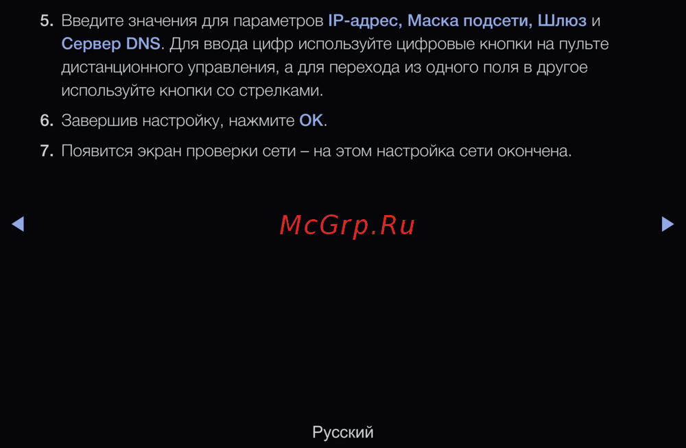 Сервер DNS. Для ввода цифр используйте цифровые кнопки на пульте