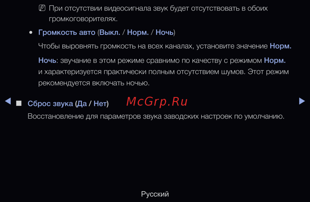 Чтобы выровнять громкость на всех каналах, установите значение Норм.