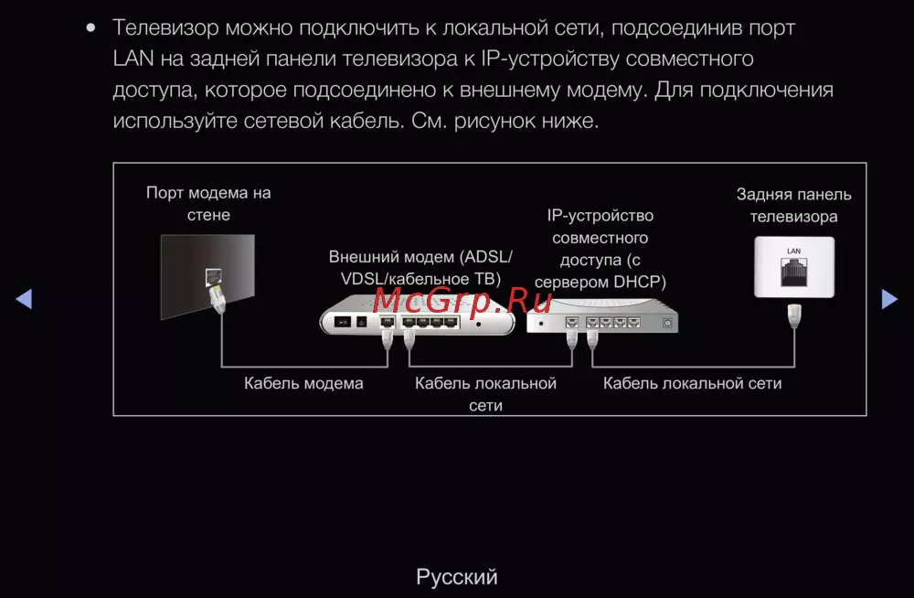 Samsung UE-46 D6100SW [111/340] Телевизор можно подключить к локальной сети подсоединив порт lan на задней панели телевизора к ip устройству совместного доступа которое подсоединено к внешнему модему для подключения используйте сетевой кабель см рисунок ниже