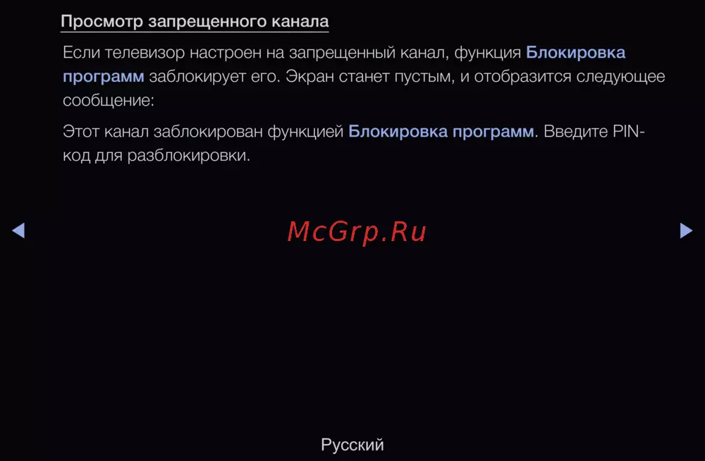 Если телевизор настроен на запрещенный канал, функция Блокировка