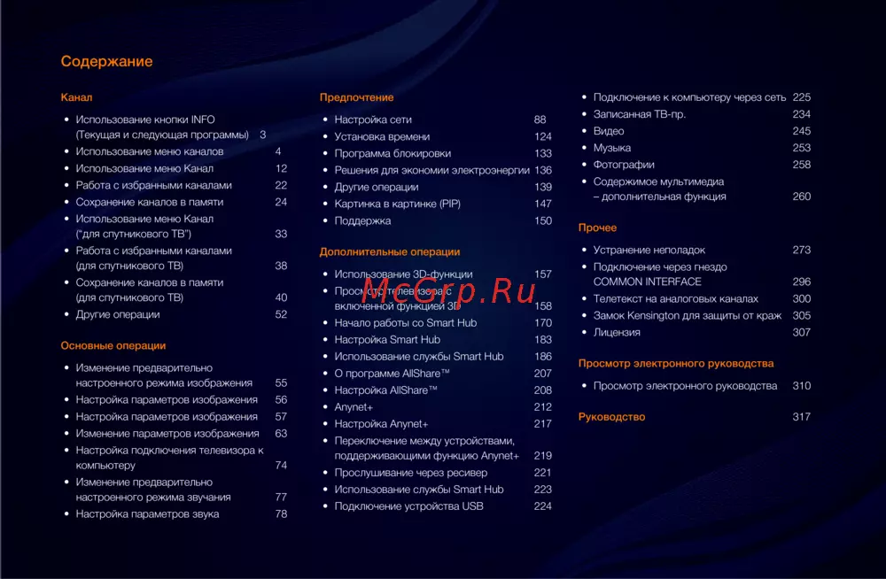 - При возникновении вопросов связанных с работой телевизора сначала просмотрите следующий список если ни один из перечисленных советов не поможет устранить неисправность посетите веб узел www samsung com выберите пункт поддержка или обратитесь в операторский центр p.304