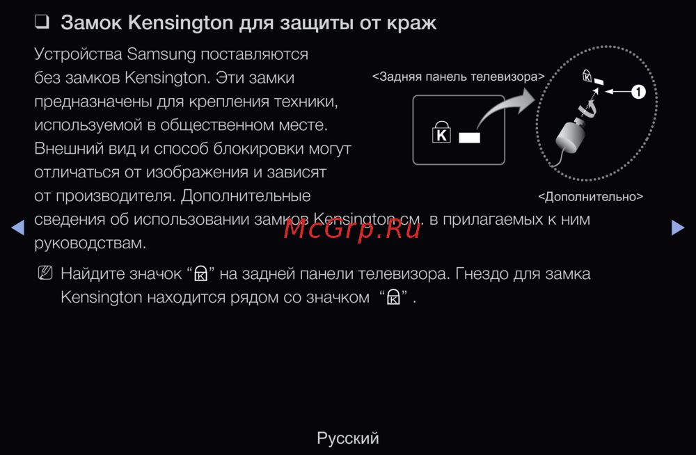 Samsung UE-46 D6100SW — замок Kensington для защиты техники в общественных местах [327/340]