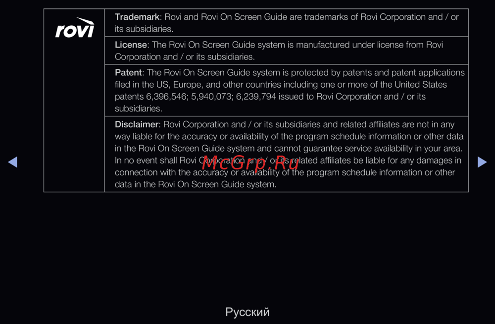 patents 6,396,546; 5,940,073; 6,239,794 issued to Rovi Corporation and / or its