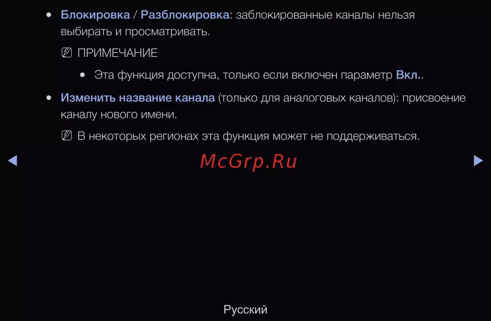 Блокировка / Разблокировка: заблокированные каналы нельзя
