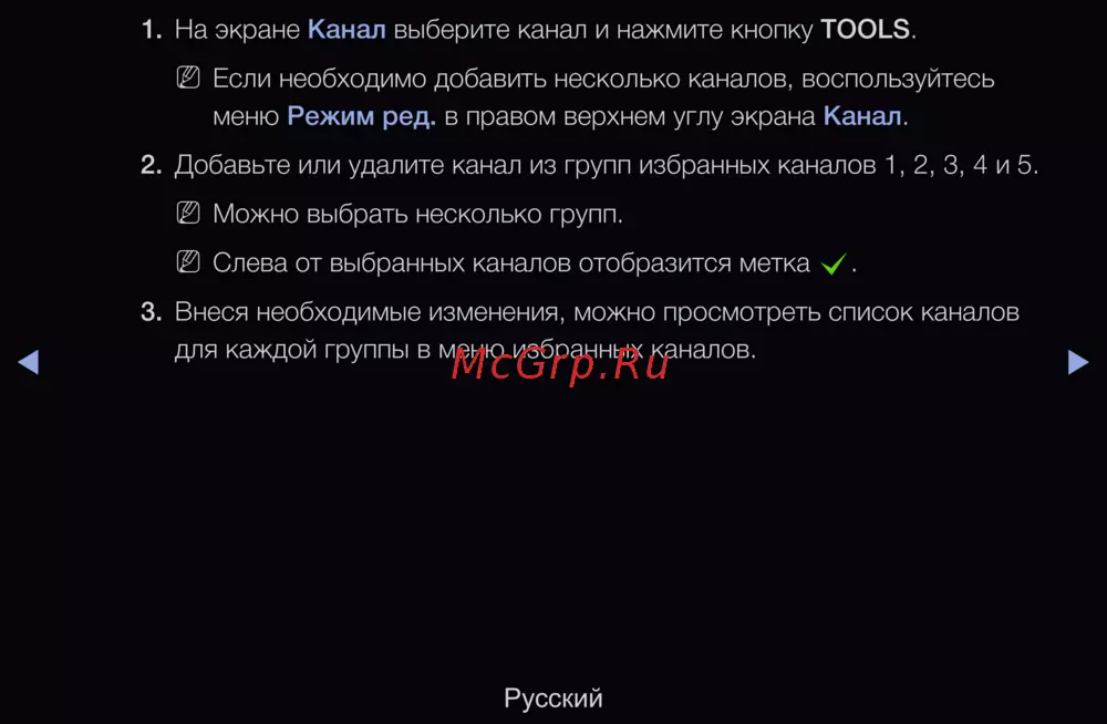 2. Добавьте или удалите канал из групп избранных каналов 1, 2, 3, 4 и 5.