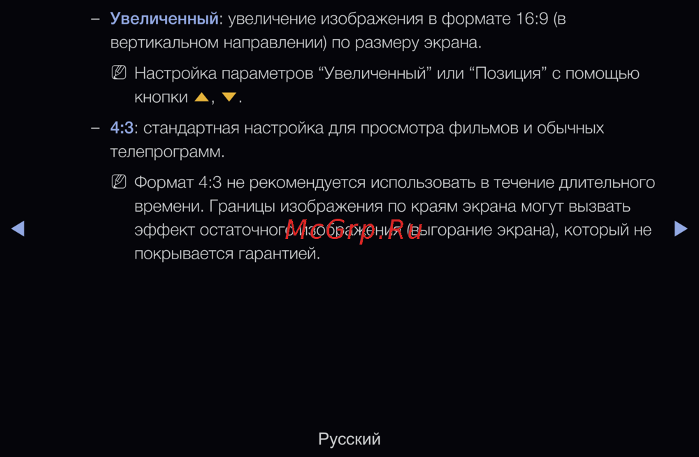 Формат 4:3 не рекомендуется использовать в течение длительного