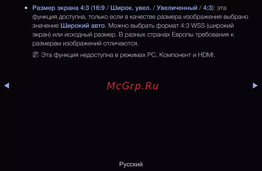 Размер экрана 4:3 (16:9 / Широк. увел. / Увеличенный / 4:3): эта