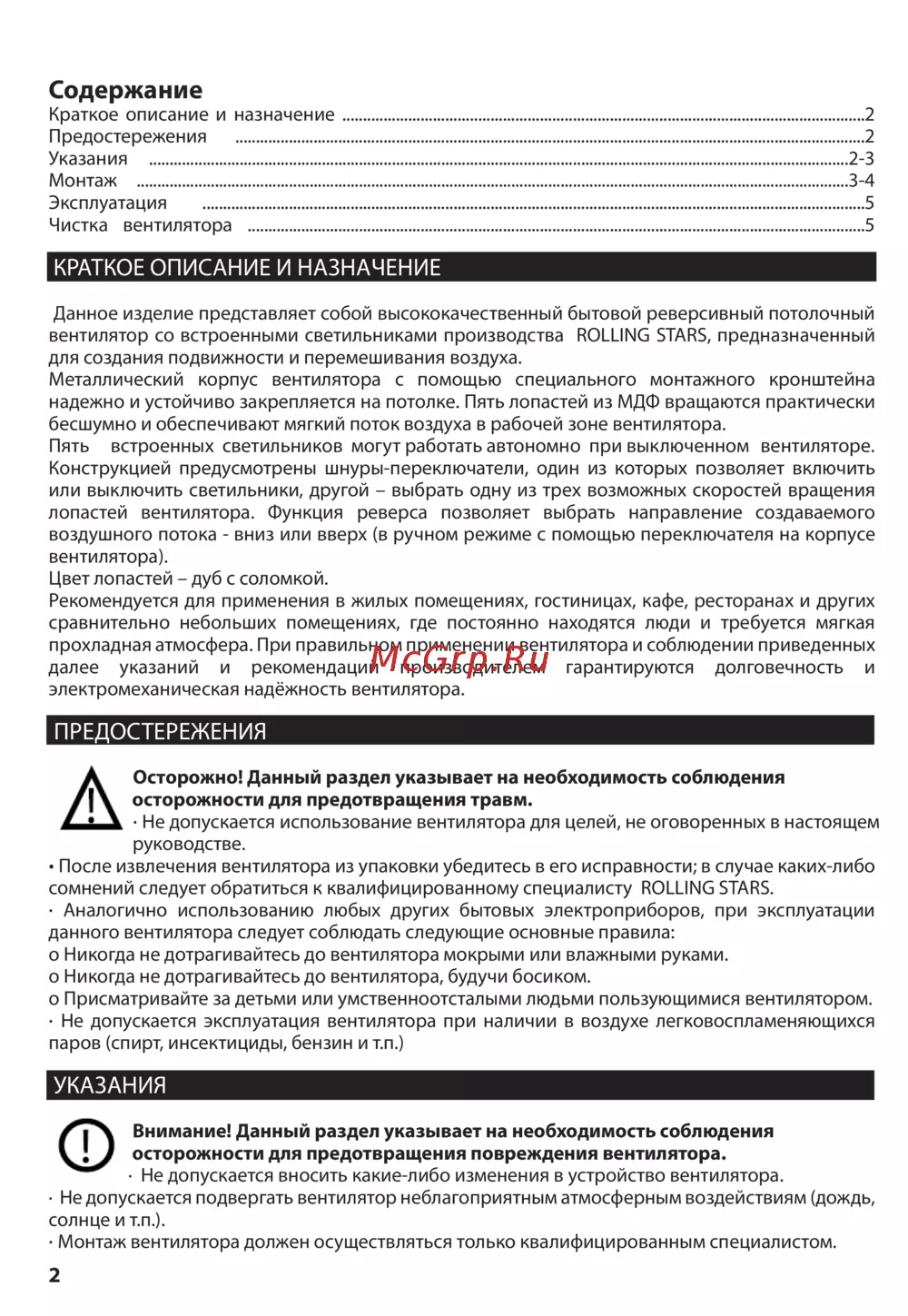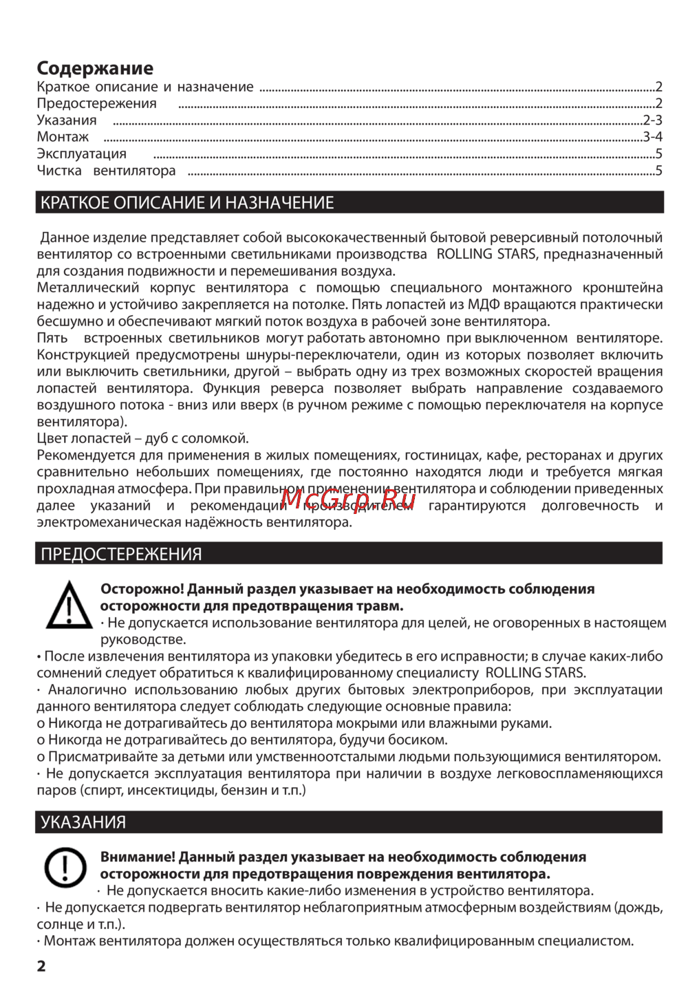 Rolling Stars Olympic Star (CF1214) — реверсивный потолочный вентилятор: описание, монтаж и эксплуатация [2/5]