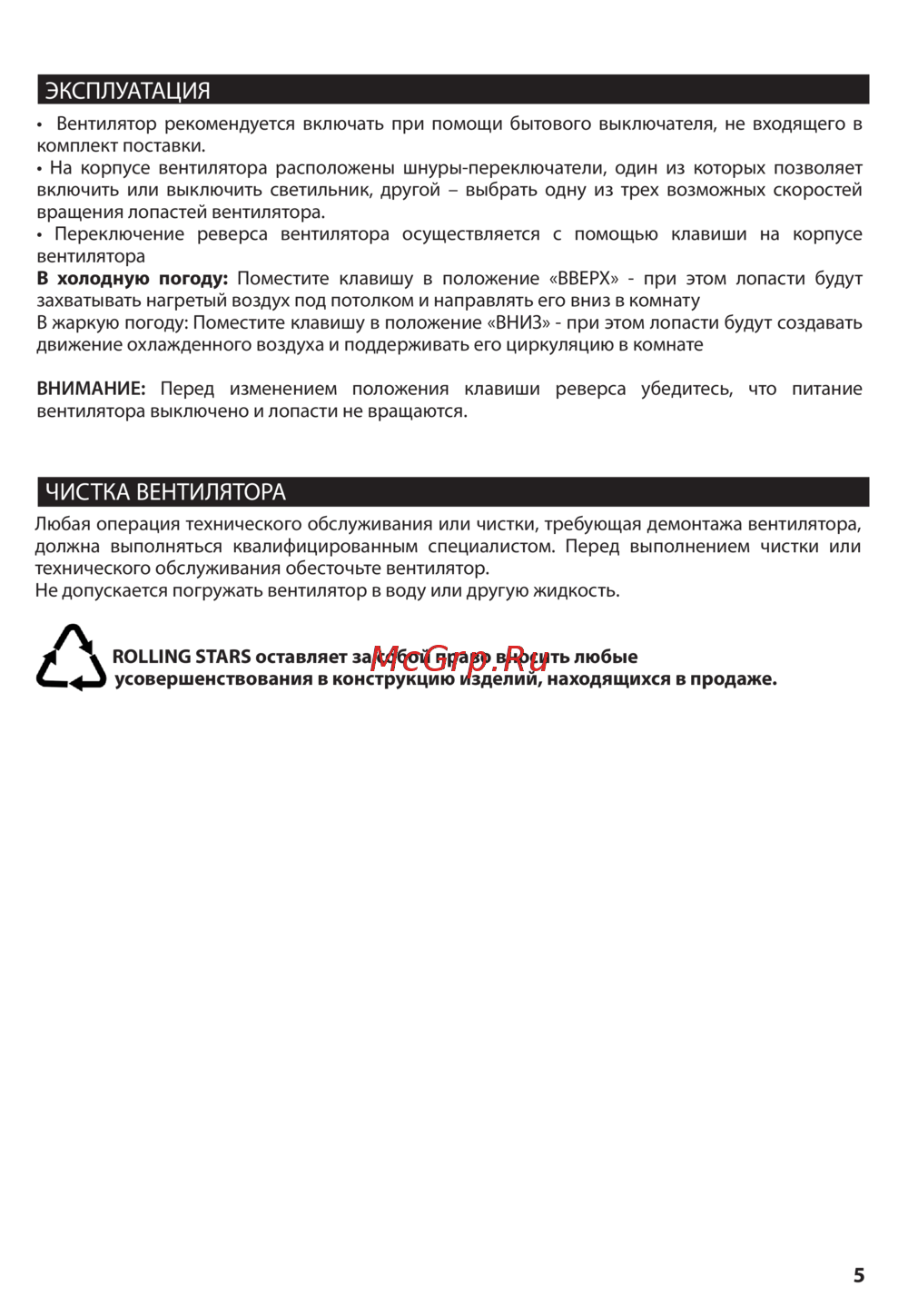 Rolling Stars Eco Star (CF1203)Инструкция по монтажу и эксплуатации