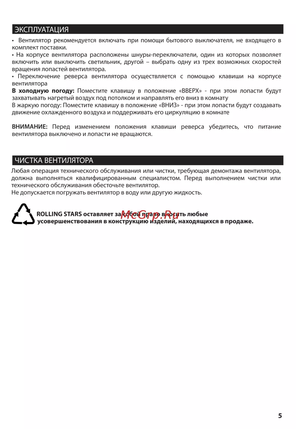 Rolling Stars Orion Star (CF1205)Инструкция по монтажу и эксплуатации -