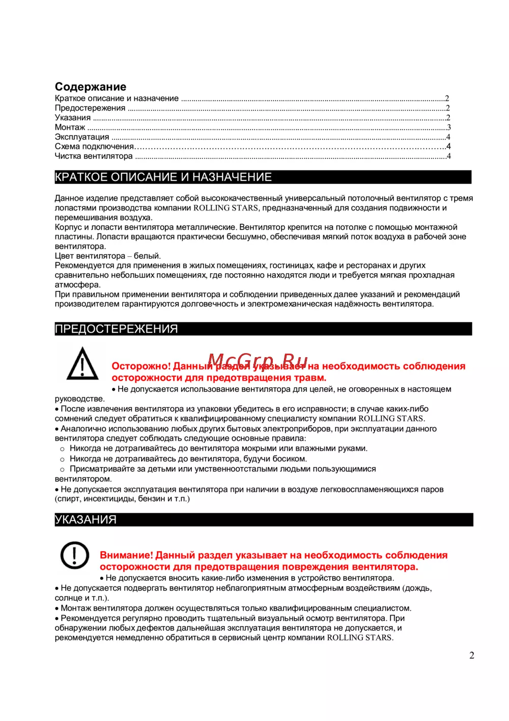 Rolling Stars Simple Star (CF1211) Инструкция по монтажу и эксплуатации онлайн [2/4] 321820