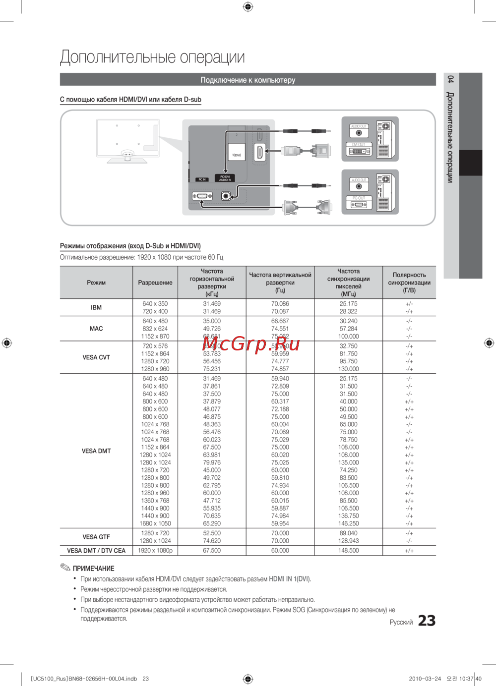 Samsung UE-40 C5100 QW — подключение и режимы отображения для видеоустройств [22/50]