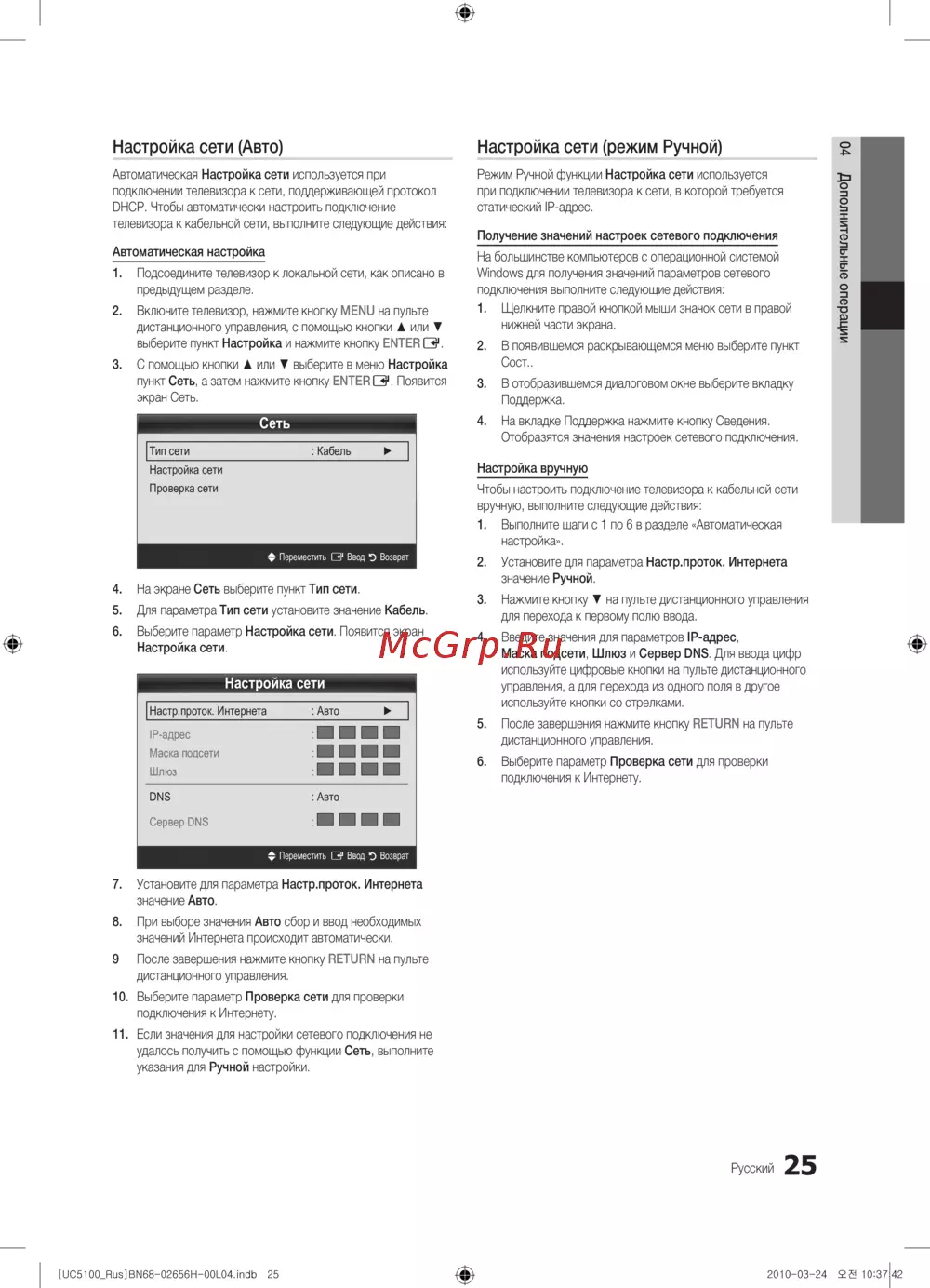 Samsung UE-40 C5100 QW — настройка сети телевизора: автоматический и ручной режимы [24/50]
