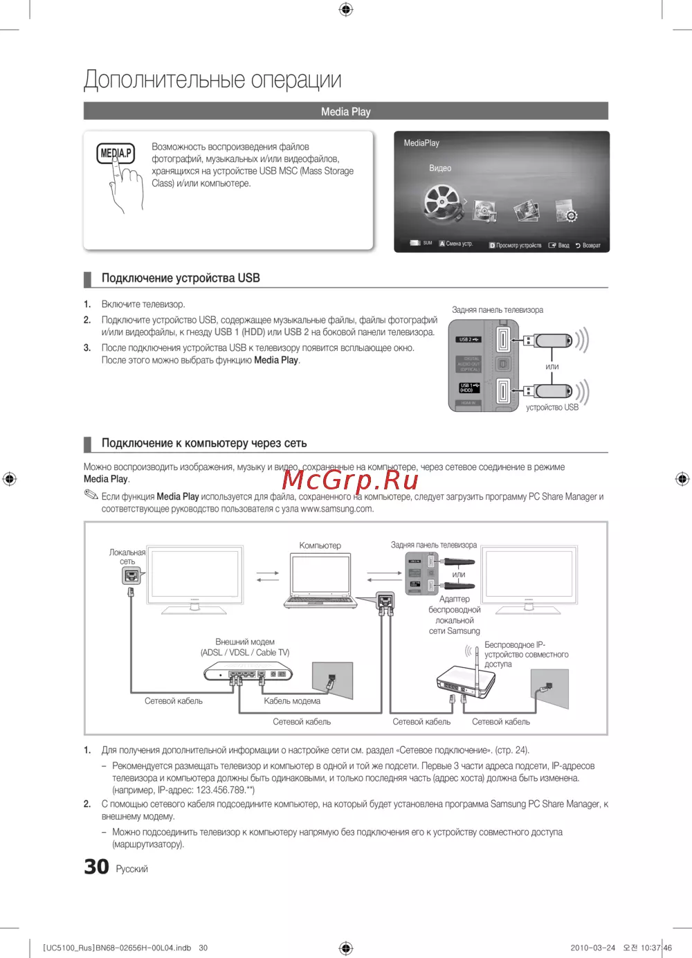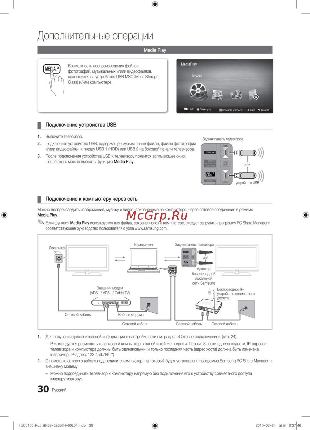 Узнайте, как подключить USB-устройство и компьютер к телевизору для воспроизведения музыки, фотографий и видео через функцию Media Play. Подробные инструкции.