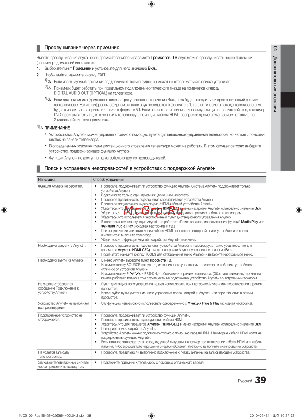 - Поиск и устранение неисправностей в устройствах с поддержкой anynet p.38