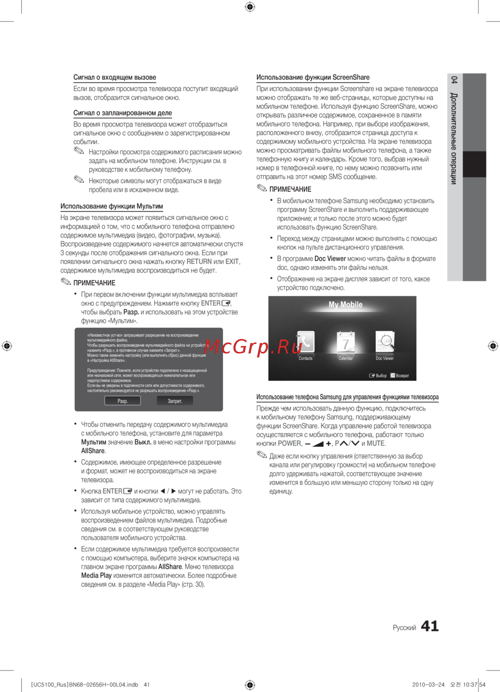 Samsung UE-40 C5100 QW — функции мультимедиа и ScreenShare на телевизоре [40/50]