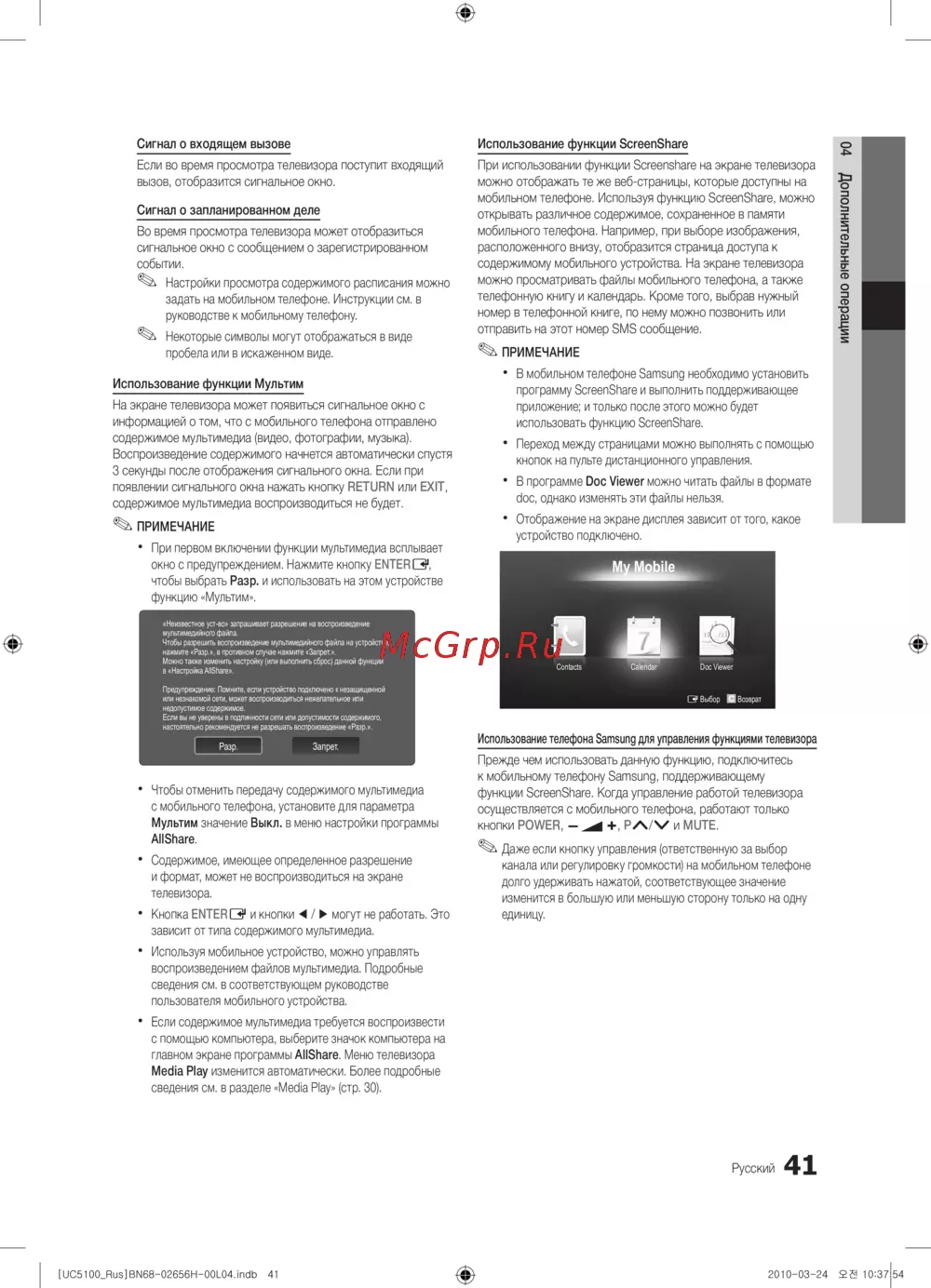 Узнайте, как использовать функции мультимедиа и ScreenShare на телевизоре для просмотра контента с мобильного устройства. Получите советы по настройке и управлению.