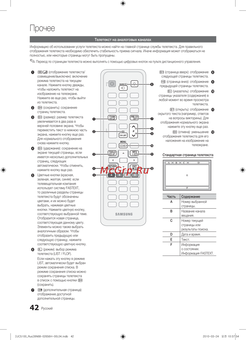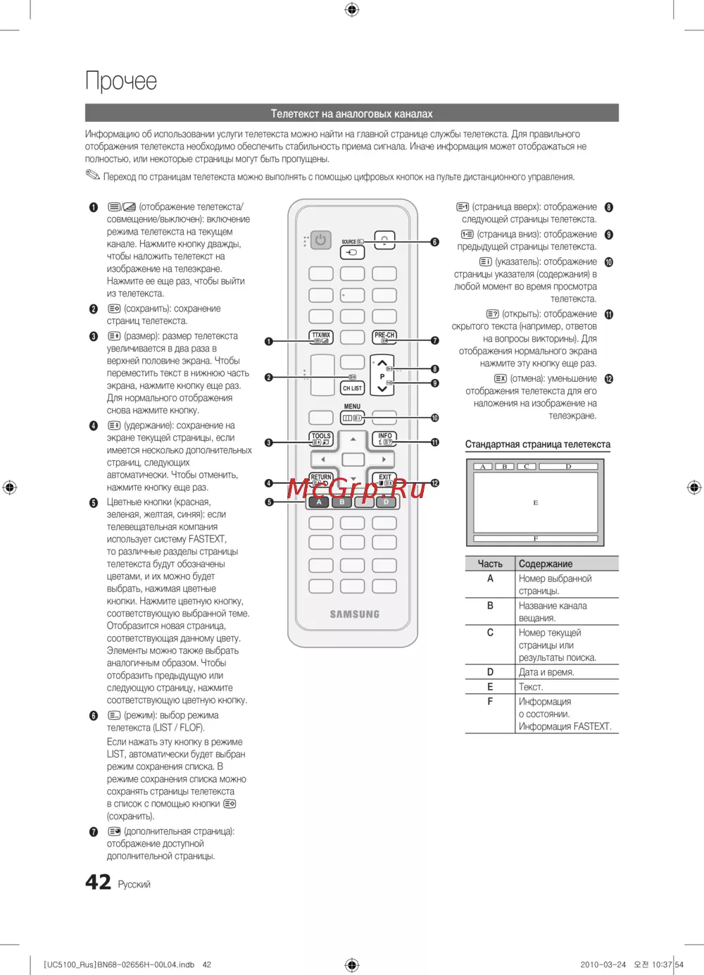 Samsung UE-40 C5100 QW — как использовать телетекст на аналоговых каналах: полное руководство [41/50]