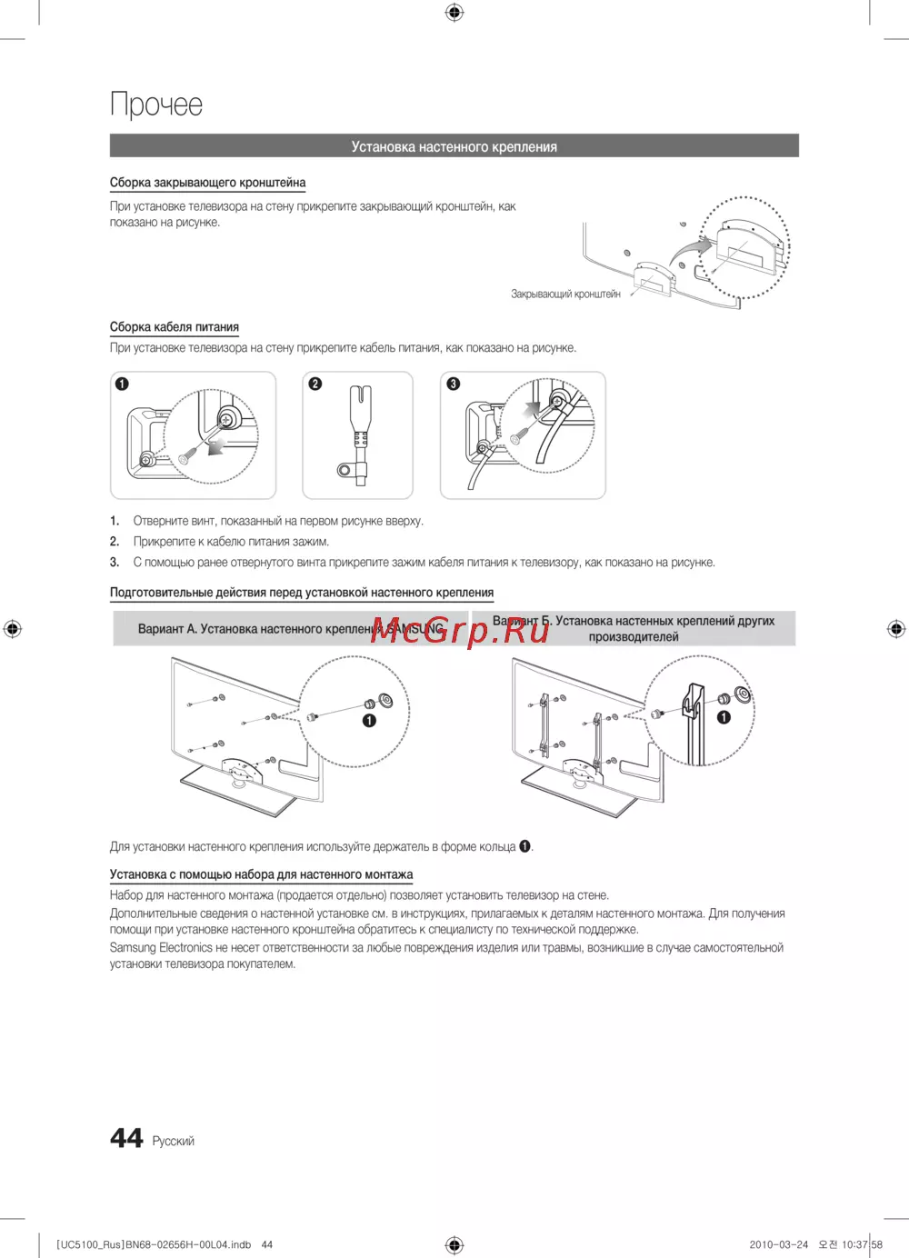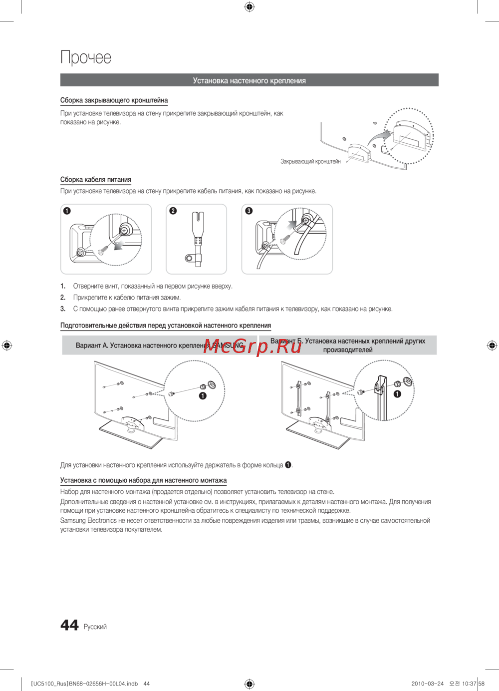 - Установка на подставку настенное крепление p.1