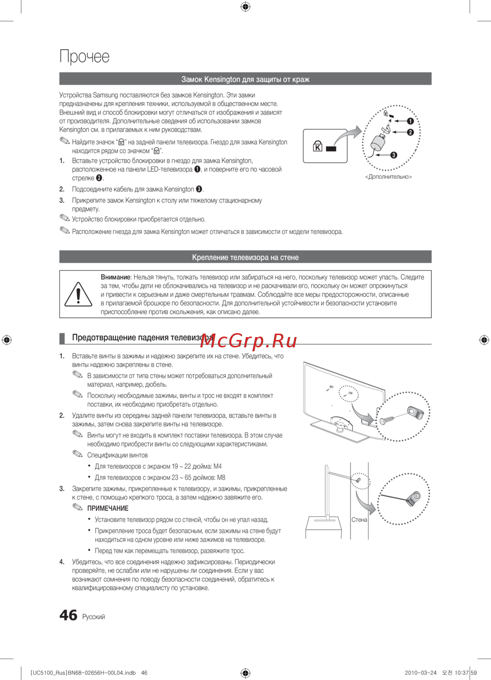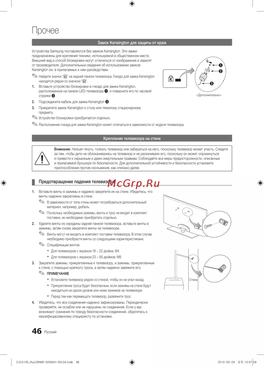 Samsung UE-40 C5100 QW — как установить замок Kensington и предотвратить падение телевизора [45/50]