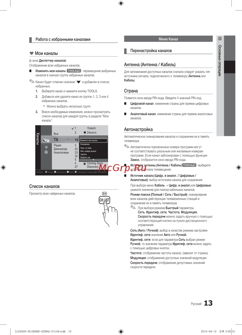 Samsung UE-40 C6510 UW — основные операции с каналами: управление и настройка [13/58]