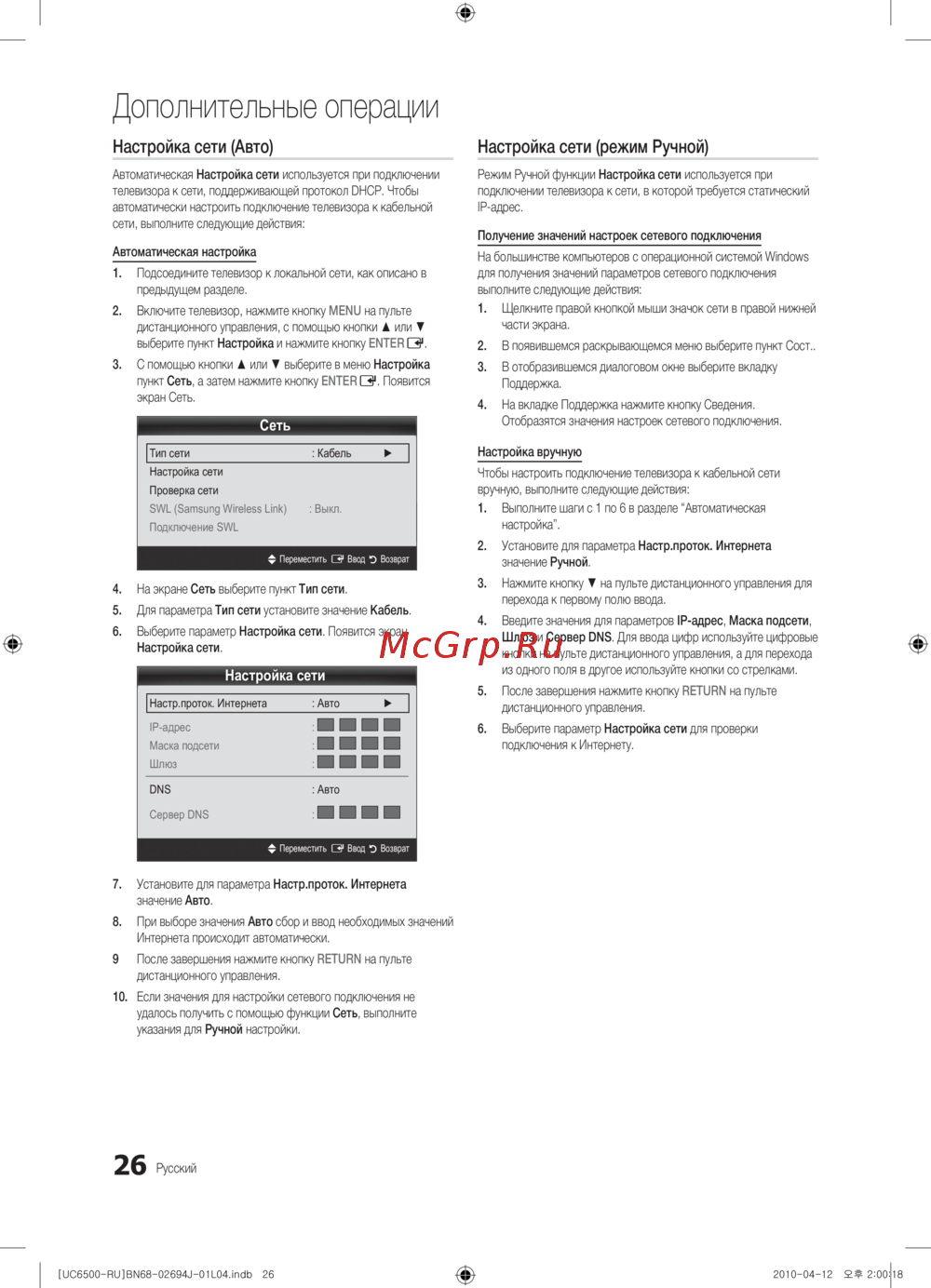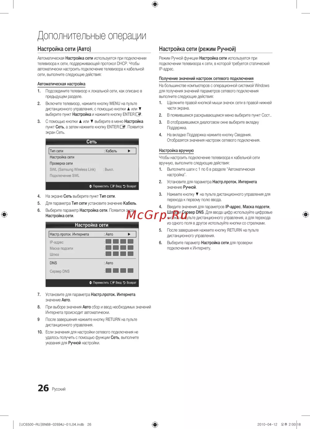 - Настройка сети режим ручной p.26