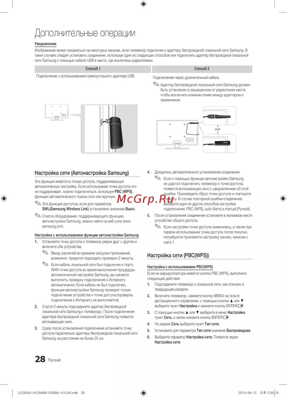 сети Samsung с помощью кабеля USB в месте, где исключены радиопомехи.