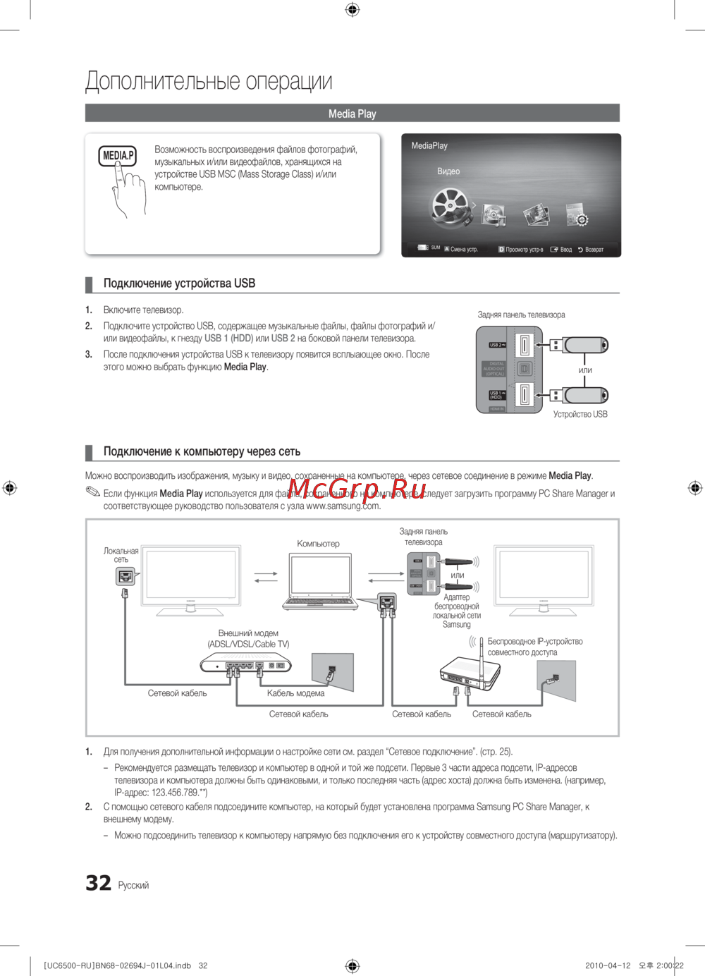 Samsung UE-40 C6510 UW — как подключить USB-устройство к телевизору для воспроизведения медиа [32/58]