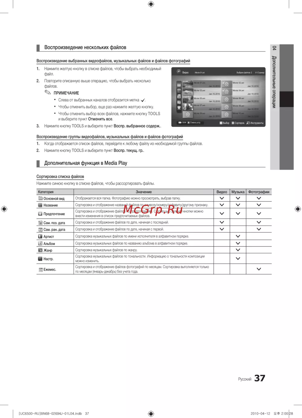 - Дополнительная функция в media play p.37