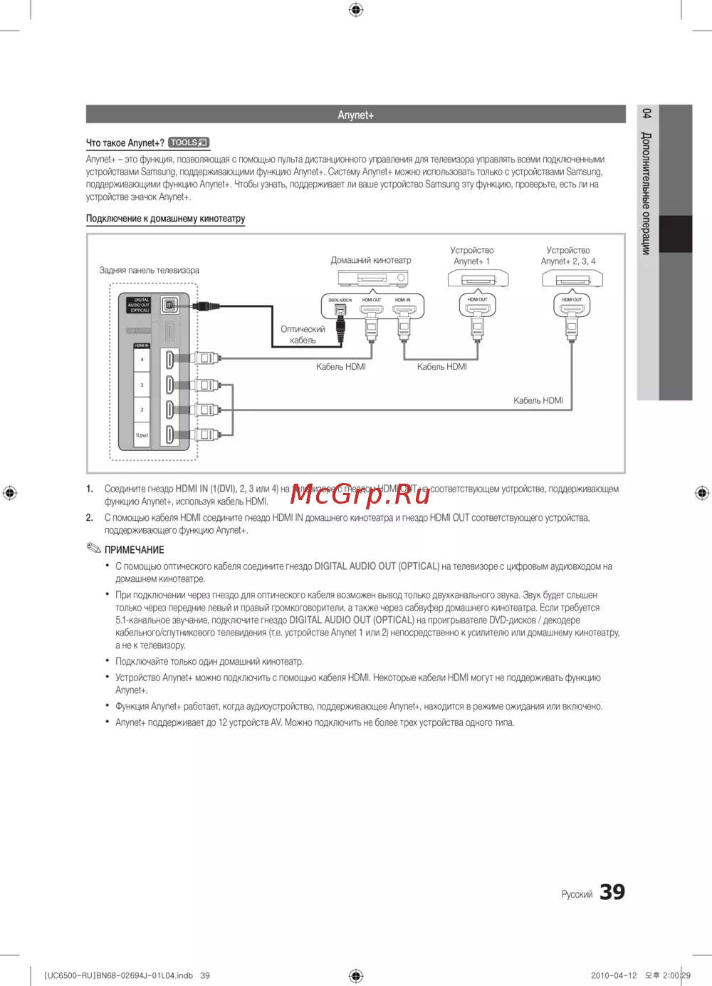 поддерживающими функцию Anynet+. Чтобы узнать, поддерживает ли ваше устройство Samsung эту функцию, проверьте, есть ли на