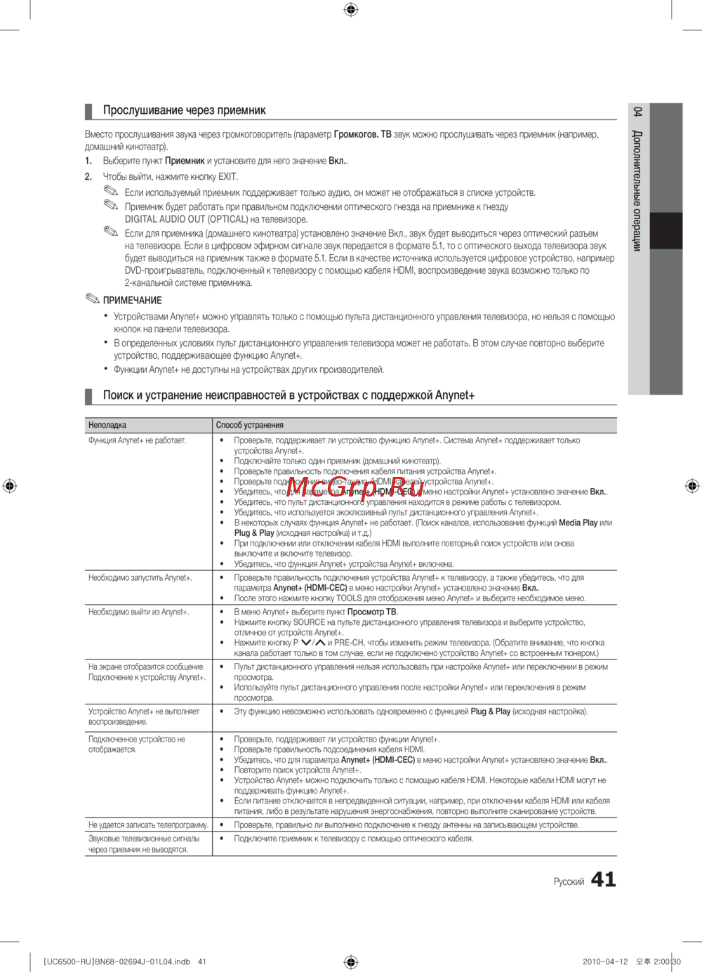 - Поиск и устранение неисправностей в устройствах с поддержкой anynet p.41