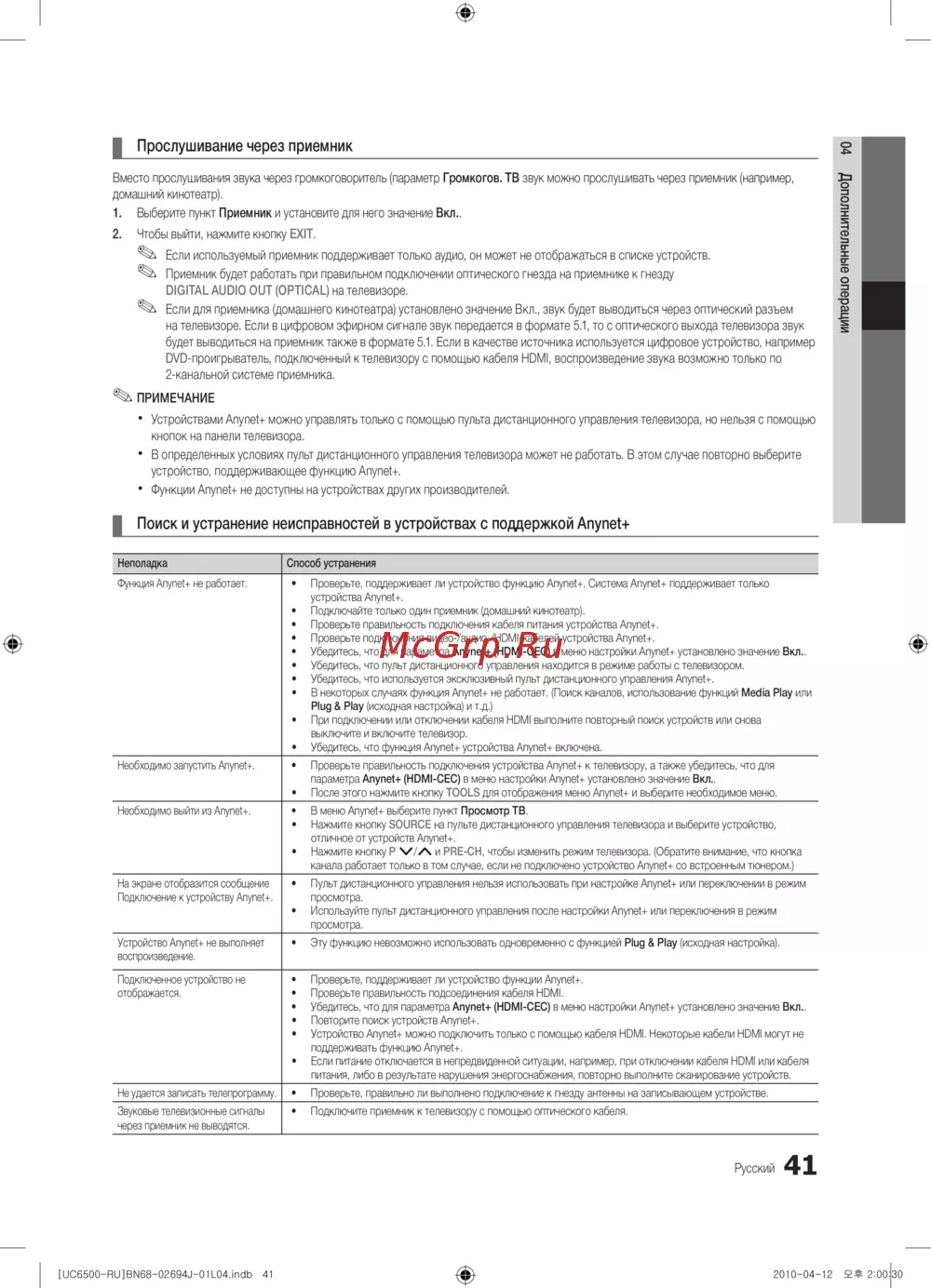 ¦ Поиск и устранение неисправностей в устройствах с поддержкой Anynet+