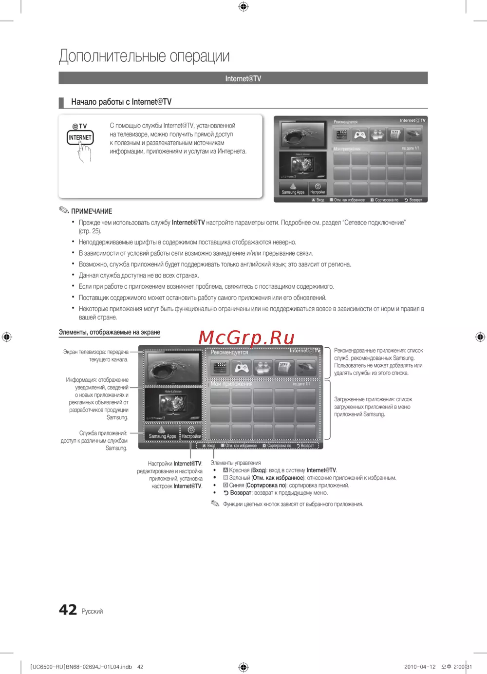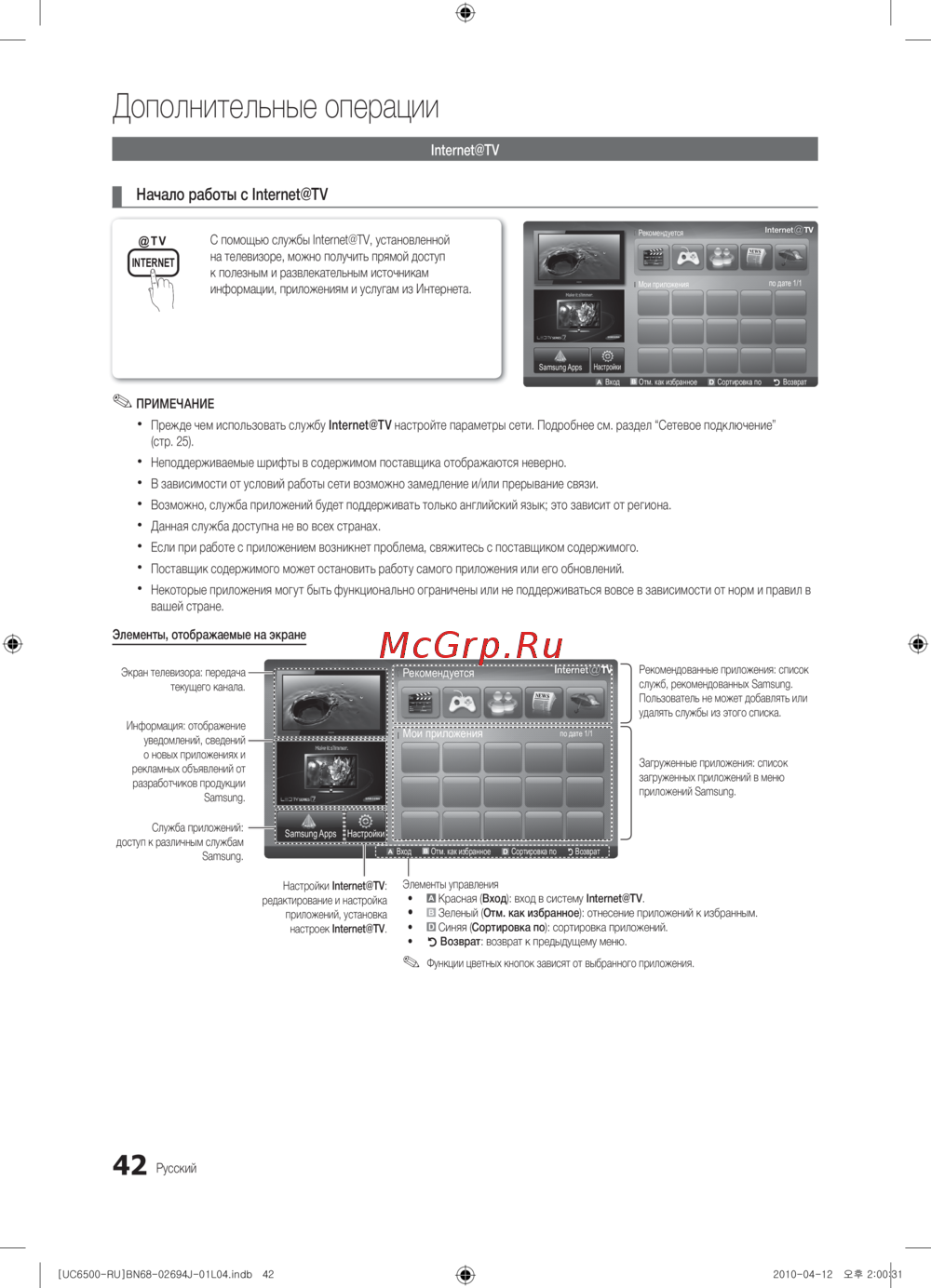 Узнайте, как настроить и использовать Internet@TV для доступа к приложениям и услугам. Получите советы по устранению проблем и настройке сети.