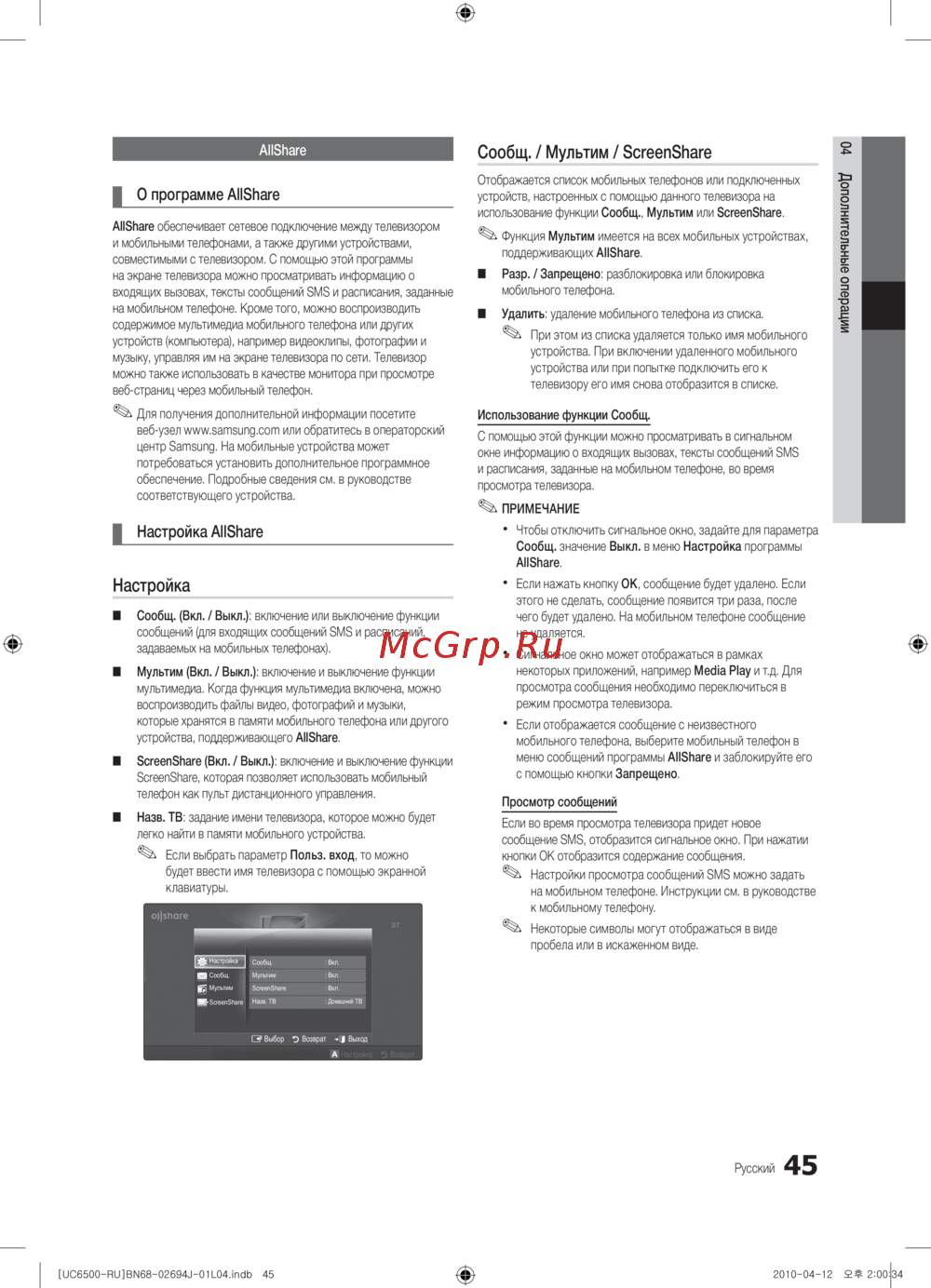 ![Samsung UE-40 C6510 UW [45/58] Сообщ мультим screenshare](/views2/1038782/page45/bg2d.png)
