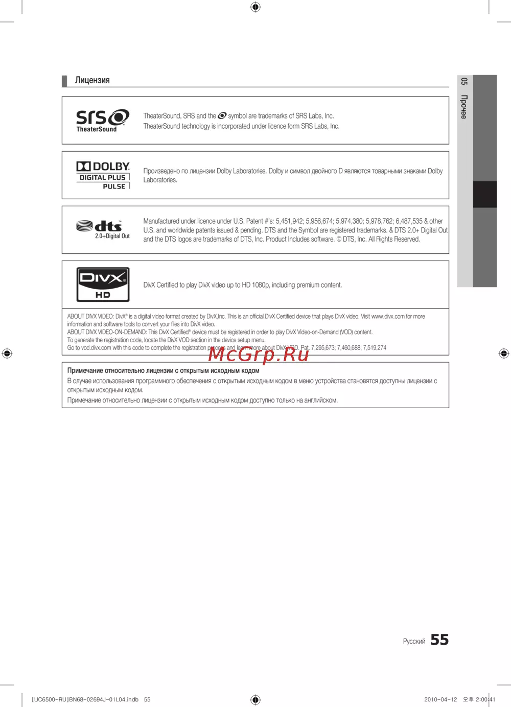 Произведено по лицензии Dolby Laboratories. Dolby и символ двойного D являются товарными знаками Dolby